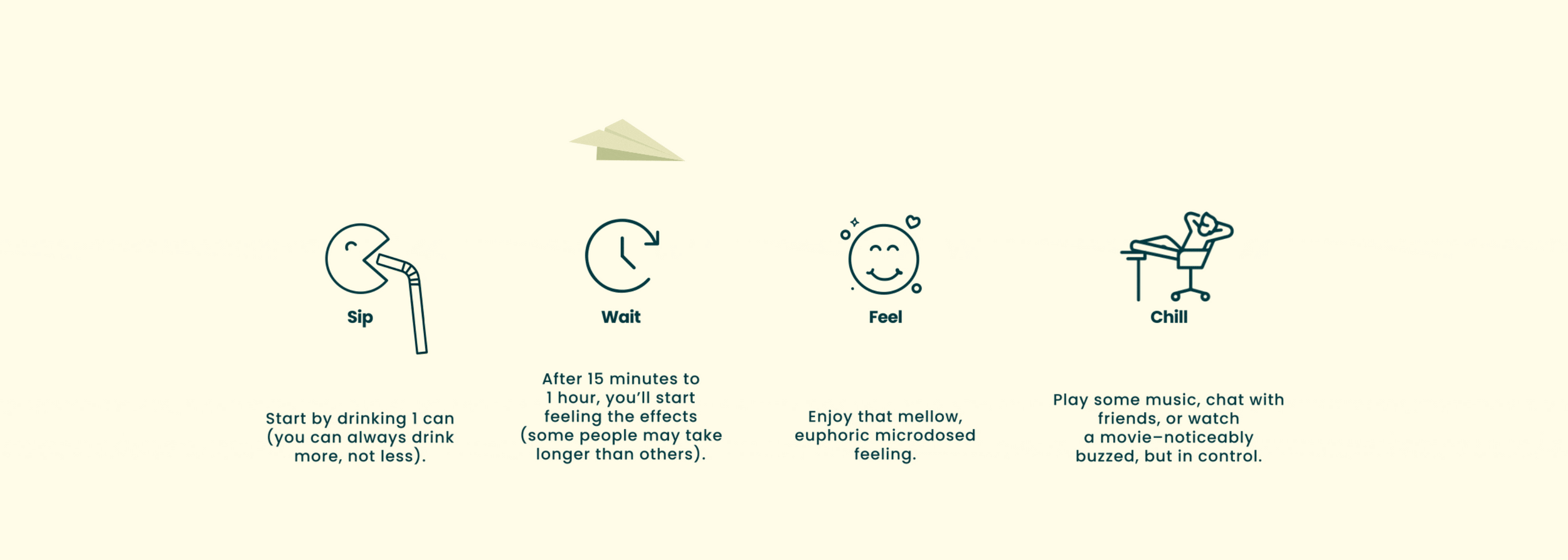 Expect a light, relaxed, and elevated feeling. Our carefully balanced blend is designed to help you unwind and feel good without the next-day regrets. It’s like vacation mode in a can.